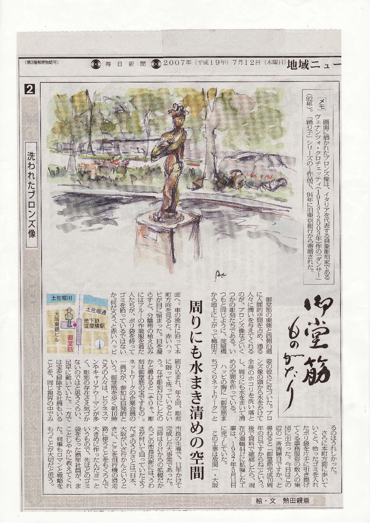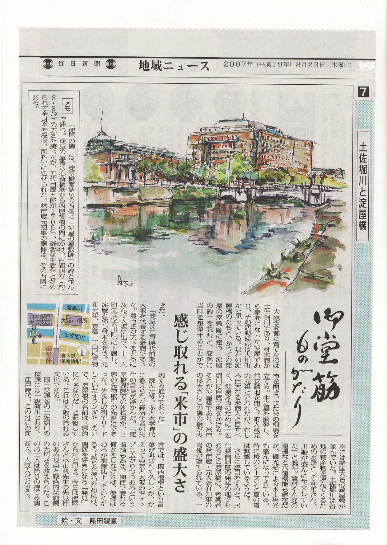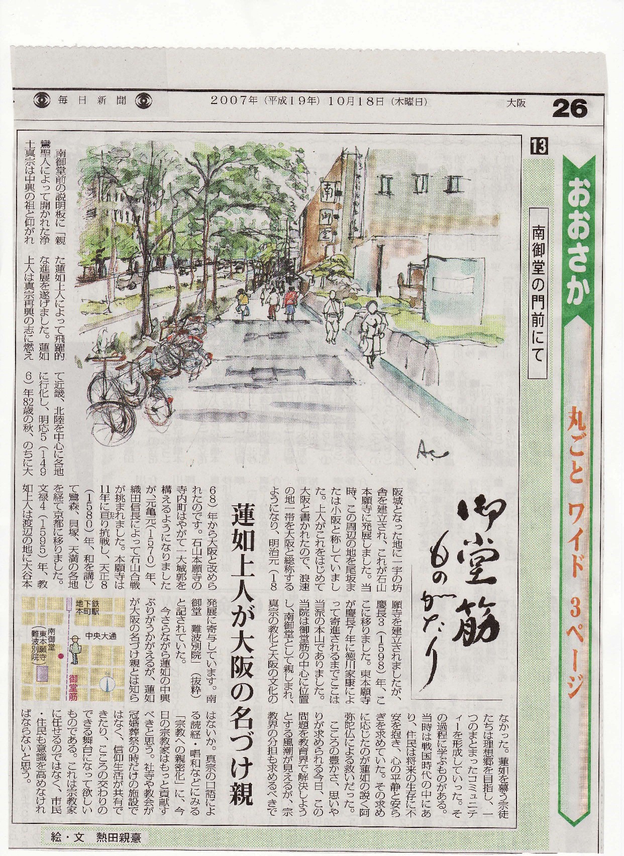 平成19年7月〜平成20年9月末まで毎日新聞・大阪版、毎週木曜の朝刊に「御堂筋ものがたり」を連載いたしました。