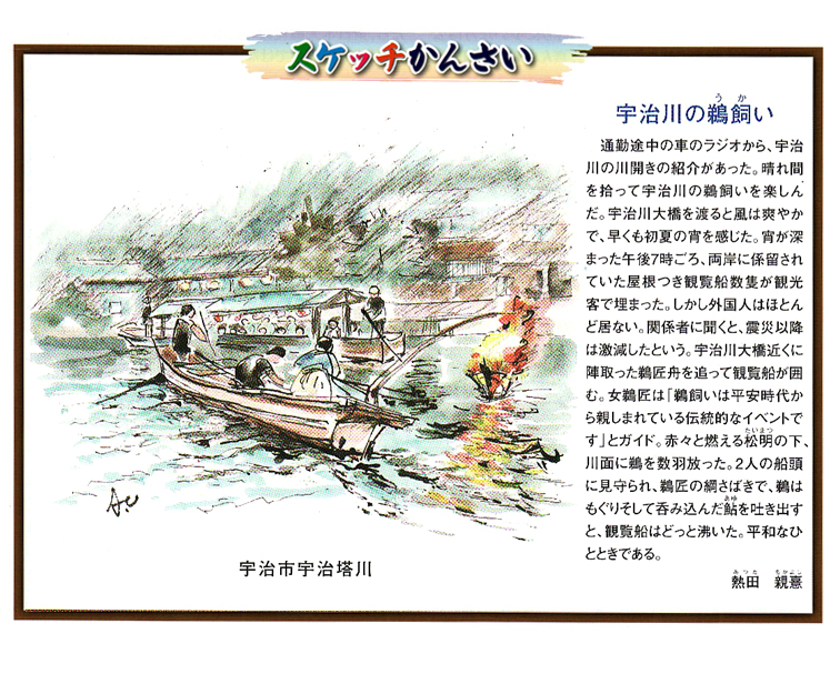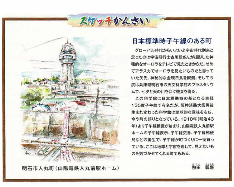 関西版の関西スクエアの会報誌にA5サイズのスペースをいただいて「かんさいスケッチ」(絵と文)を平成23年4月より連載しております。写真では伝えられていない関西風物詩を現地取材しながらご紹介しています。そのお裾分けを思い立ったしだいです。ご声援をお願い致します。アイデア提供も歓迎いたします。 熱田
